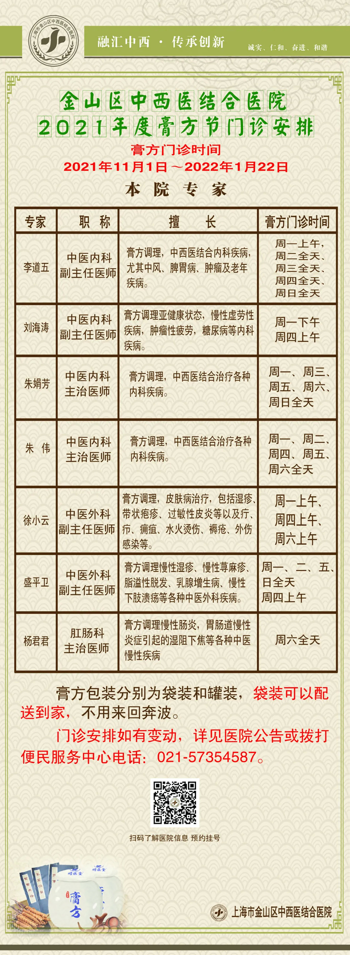 “膏方节”来啦!金山这家医院现场预约膏方门诊可免挂号费!
