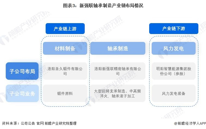 从上游来看,新强联于2011年8月成立圣久锻件,公司大型回转轴承生产提供了锻件原料保障。下游延伸至明阳智慧能源集团股份公司(参股),主营风力发电装备。整体来看,新强联的产业链布局较为完善。