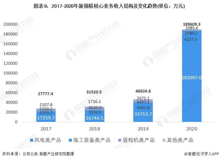 从轴承产品的营业收入来看,新强联轴承业务的营收走势基本与轴承产品产销量的走势一致。2020年,新强联的轴承业务收入达到18.96亿元,同比增长304.3%。