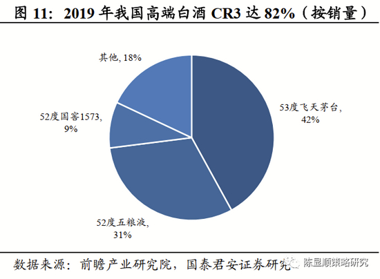 ▶ 白酒:结构化发展延续,行业步入稳增长时代。我国白酒文化底蕴深厚,现已形成以酱香型、浓香型、清香型、米香型为代表的12大香型。白酒行业的发展大致经历了三个阶段:2003-2012年,受益于地产、基建投资的快速增长,行业步入高速发展的“黄金十年”,期间白酒产量高速增长,政商消费是需求的主要来源。2013年,随着限制“三公消费”,酒驾入刑等政策的陆续出台,行业步入深度调整期,期间白酒产量增速大幅下滑,行业逐步过渡至存量竞争时代。2016年至今,随着大众消费的崛起,白酒开启新一轮增长周期,但核心增长逻辑由经济周期驱动下政商消费主导的量增向大众消费下产品结构升级带来的价增切换,行业周期性显著减弱,步入稳增长时代。白酒产量维持下滑趋势,但结构分化加剧,产量向头部企业集中趋势明确,次高端及以上销量保持相对较快增长,中低档白酒销量持续萎缩。竞争格局方面,高端白酒竞争格局十分稳定,茅台、五粮液、国窖1573具备寡头垄断优势,销量CR3占比超80%,次高端白酒市场较为分散,CR3占比不到40%,未来仍有较大的提升空间。