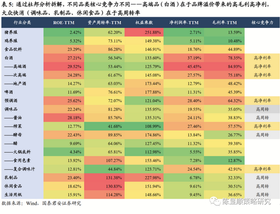 ▶ 产业链结构:必选消费产业链主要包括上游农林牧渔,下游食品饮料和个护用品。其中食品饮料又可细分为酒类(白酒、啤酒、红酒、黄酒)、调味品、休闲食品(卤制品、瓜子坚果、零食)以及乳制品(液态奶、奶粉)。必选消费中白酒、调味品行业市值较大,均超过了万亿规模。白酒、乳制品、肉制品以及休闲食品盈利能力较强。▶ 景气跟踪指标:社会消费品零售总额直观反应国内消费需求,是研究必选消费板块需要重点跟踪的数据之一。白酒主要跟踪茅台/五粮液/国窖一批价,乳制品跟踪原牛乳价格(上游原奶价格占乳制品成本约60%)。当前电商行业发展较为成熟,淘宝/京东平台酒类/乳制品/休闲食品/调味品月度销量同样值得跟踪。▶ 行情驱动力:受宏观周期与产品周期双重影响,两者共振往往会酝酿出绝佳配置机会。通过对比中信风格指数和宏观因子(物价、流动性、经济增长、市场风险)相关性,我们发现:1)所有板块盈利都是顺经济周期的,从盈利和经济周期关联度强弱看,金融>周期>消费>成长。2)周期和消费行情更易受到自上而下经济周期逻辑驱动,成长行情易受产业逻辑驱动,金融行情易受避险逻辑驱动。消费有抗经济周期和避险双重属性。在经济有下行压力、无风险利率下行、市场不确定风险提升的环境中,消费板块跑赢市场的概率越高。消费行业的周期就是产品生命周期,特点是延续性强、差异化程度高,百威啤酒、可口可乐从推出到销量见顶,历时均超过100年,全球市场销售规模超过2000亿元。当宏观环境和产业周期均超有利的方向变化时,必选消费往往出现绝佳配置机会。▶ 边际变化:如何捕捉产品周期景气拐点?关注产品、渠道和营销的边际变化。不同品类核心竞争力不同,通过杜邦分析拆解,可以看出高端品(白酒)在于品牌溢价带来的高毛利高净利,大众快消(调味品、乳制品、休闲食品)在于复购率提升带来的高周转。两者本质都是公司品牌力的体现,品牌力是慢变量,什么因素影响了消费品短中期景气度?如何捕捉产品周期景气拐点?答案就在产品、渠道和营销。渠道和营销是销售行业短期变量,一个公司的渠道和营销发生变化,很有可能短期会具有非常强的爆发力,如次高端白酒渠道下沉、扩充经销商数量;蒙牛、伊利、王老吉通过冠名综艺迅速建立起全国知名度。产品力是中期变量,若某公司推出了一个大单品,那这个大产品有可能带来阶段性公司收入和利润快速增长,如伊利依靠安慕希、光明凭借莫斯利安获得二次成长机会。▶ 风险提示:费用投放放缓后销量下滑,宏观经济超预期下行。