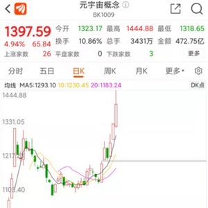 截至11月5日收盘,东财元宇宙概念指数本周大幅上涨11.11%,周K线连续三周收阳,三周累计涨幅高达18.84%。