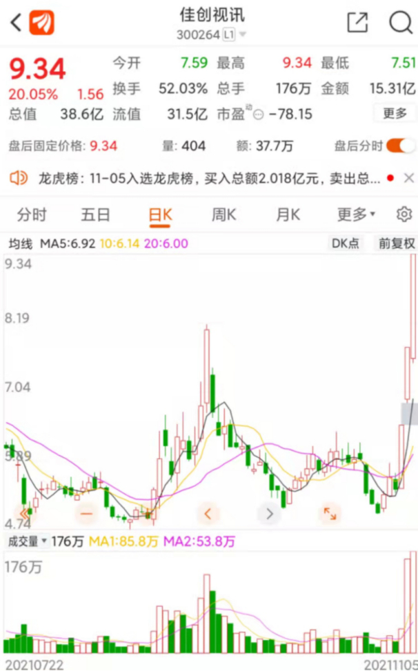 “元宇宙”概念龙头股创业板股票佳创视讯连续三个交易日涨停,创业板个股单日涨停涨幅为20%,截至11月5日,佳创视讯3个交易日累计上涨72.96%。
