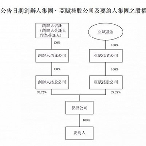 根据该方案,金嗓子实现私有化首先将建立一个多层离岸公司架构。创始人信托(江佩珍和她儿子曾勇控制)与亚赋基金在英国开曼创立一个控股公司,这家公司再全资设立一家子公司,即要约人,由创始人信托持股70.72%,亚赋基金持股29.28%。