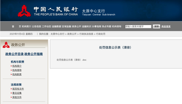 2019年12月3日,中国人民银行网站公布的中国人民银行太原中心支行行政处罚信息公示表(并银罚字〔2019〕第18号)显示, 山西清徐农村商业银行股份有限公司违反反洗钱业务管理、人民币银行结算账户管理和人民币管理规定, 中国人民银行太原中心支行对其处以警告;对单位罚款合计22.7万元;对相关责任人员罚款合计3万元。