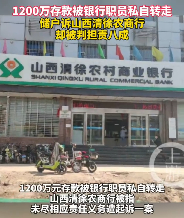 2021年9月份,山西清徐县人民法院对1200万存款被银行职员私自转走一案,作出一审判决: