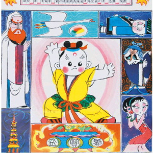 《天书奇谭》根据罗贯中的《平妖传》部分章节改编,由上海美术电影制片厂于1983年出品,王树忱、钱运达联合导演。在经过创作者精心改编之后,这部魔幻题材的小说成了一部妙趣横生的动画故事。影片中,天书的存在像是一面照妖镜,善恶由此两分。三只狐狸,偷吃仙丹变成狐妖,盗走天书,代表着邪恶势力。蛋生和袁公,则是正义力量的化身,与妖狐斗智斗勇,夺回被搜刮的民脂民膏。