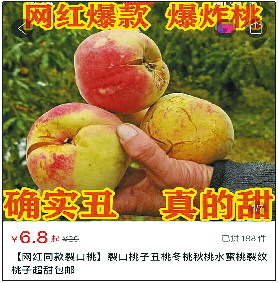 您听说过“爆炸桃”吗?因为这个神秘而形象的名字,一种看上去并不好看的桃子火了,网店甚至卖出了一斤超过15元的价格。可是,果农却认为,这是次品、劣果,每斤收购价低到四五毛一斤。