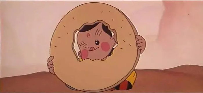 电影中有一幕蛋生吃饼的画面,他把饼的中心吃完了然后把饼套在脖子上,据说这种吃法在当年电影上映后得到了全国很多小朋友的cosplay。