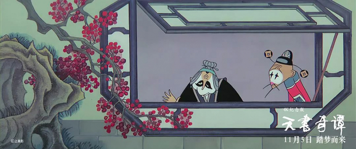 片中许多角色形象都来源于戏曲造型,生旦净末丑俱全。比如狐女的斜眼、两片腮红,就吸取了京剧旦角的造型特点;县太爷的造型,一看就是丑角;阿拐则有几分京剧小生的感觉。