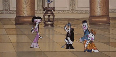 而电影里的皇帝,居然是个木偶造型的小孩子,性格残忍昏庸,视人命如草芥,看到老虎吃人,居然觉得很好玩。谁不能再给他变戏法,让他感到无聊了,他就要杀谁的头。动画虽然夸张,但细想一下,历史上是不是有过这样的暴君、儿皇帝?