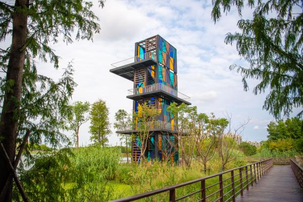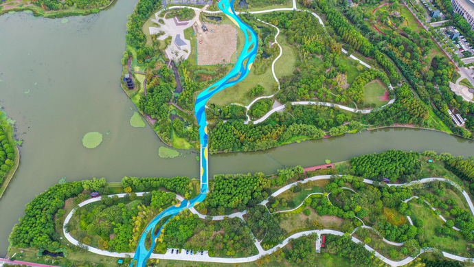 临港新片区二环城市公园2公里公园带内,各具特色的小筑节点分布其中。 孟雨涵 摄