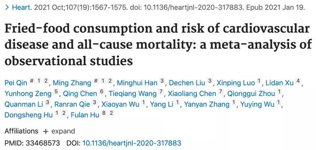 科学家汇总分析了17项相关研究数据,其中包括562445名参与者和36727起主要心血管事件的数据,以评估吃油炸食物与心血管疾病风险的联系。