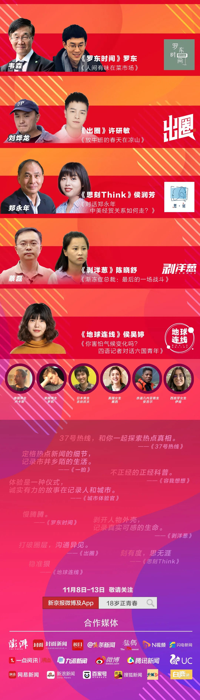 在接下来一周时间里,我们每天都会发布两期视频,在新京报官方微信、微博,以及APP,可以看到他们的谈话或者专访。
