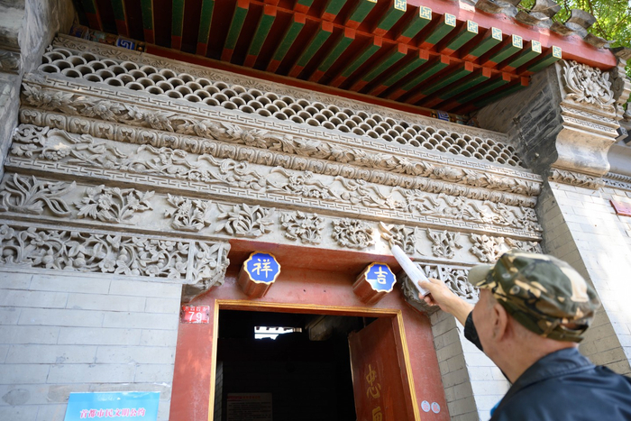 9月22日,北京东四四条,郑毅带着记者实地探访胡同,讲述砖雕上的暗八仙。新京报记者 王子诚 摄