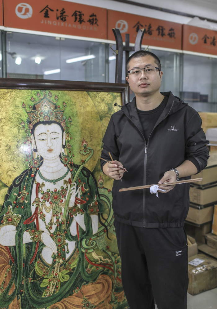 在直播中,侯雪发现,一些人对金漆镶嵌这门古老的工艺存有误解。比如,有人认为都得是古董,还有人觉得它和普通人没什么关系,等等。其实,金漆镶嵌的工艺和材料也在创新,他期待着,这种艺术能够飞入更多寻常百姓家。