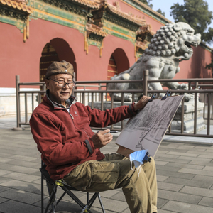 2021年11月4日,画家伍佩衔在景山公园内作画。新京报记者 浦峰 摄