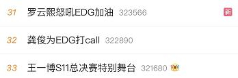 值得一提的是,橙柿互动记者注意到,昨晚的新浪微博热搜榜,一度被edg承包了!