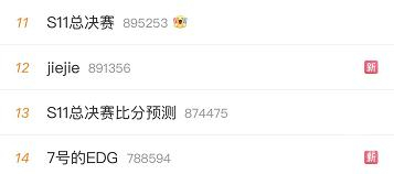 截至11月7日00:15,关于edg和s11的话题词,在热搜榜前50个中占据了17个,从一定程度上说,算是承包了昨晚所有的热点。特别是话题词#egd夺冠flag#,从6日晚开始,一直到夺冠前,都牢牢守住了热搜第一的位置,可见edg的人气有多高!