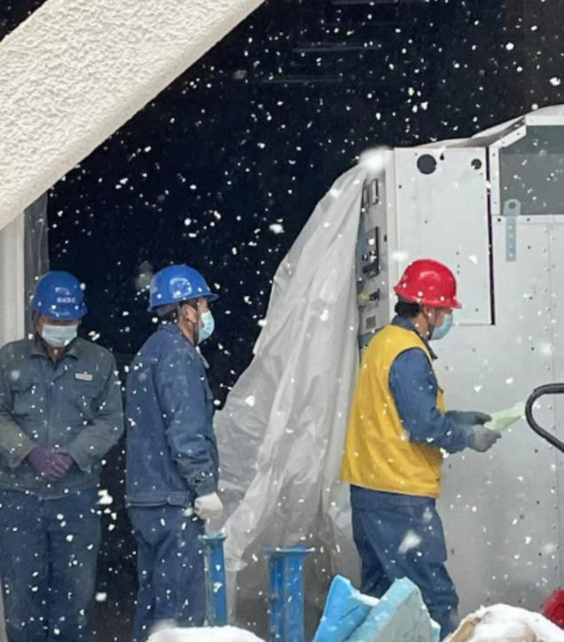 11月6日,兰州突降大雪,正值疫情期间,兰州倚能电力集团客户事业部计量班人员在风雪中为兰州生物制品研究所新冠疫苗生产车间增容项目安装高压柜、变压器。