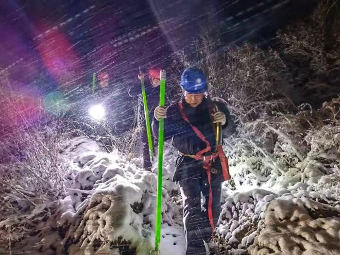 “大家注意脚下,保证安全。咱们加把劲儿早点找到故障原因,这么大的风雪,不能让老百姓受冻!”11月7日凌晨一点钟左右,正在阜平县10千伏史家寨513线路查找故障原因的河北阜平县供电公司员工张立江向身后的同事喊道。就在刚刚,张立江接到了阜平县金泰市政热力有限公司发生故障停电的通知后,立即组织应急抢修值班的同事赶往故障线路,冒雪爬山寻找故障原因。