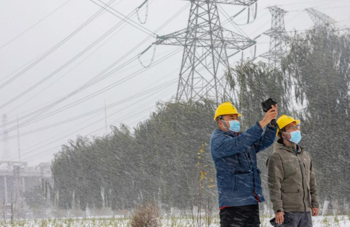 受到疫情影响,北京平谷华山供电所被封闭在大华山村内。为了保障华山供电所管辖范围内其他镇村的安全稳定用电,平谷供电公司王辛庄、峪口等10家供电所轮流对华山供电所开展支援工作。图为11月7日,王辛庄供电所员工周满成驱车赶到距王辛庄30公里外的镇罗营镇关上村开展检修工作。11月7日,天津城东供电公司配电运检人员冒雪对河东区瑞金里社区周边配电线路设备进行巡视及带电检测,缩短巡视周期,确保供电线路安全可靠运行。(刘柯岳)