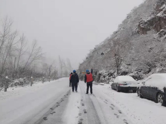 11月7日,怀柔山区普降暴雪,北京怀柔供电公司琉璃庙供电所员工雪中特巡10千伏琉青路,守护地区平稳供电。