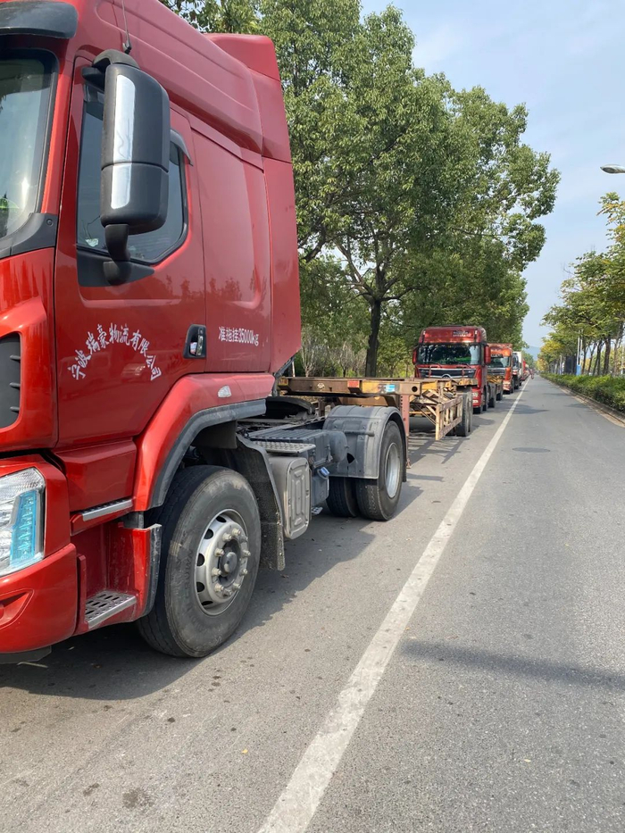 同时,记者还注意到,这些停在路边的重卡汽车,除了偶然能看到几个正在检修车辆的师傅,绝大部分驾驶室内都没有司机。“都在等集装箱,没有活干,只能在这里休息。有货柜的话,只要一个电话,都会立马赶回来。”正在修车的货车师傅对记者称,现在排队还不算多,高峰的时候,从几公里外的桥洞那头就开始排队了。