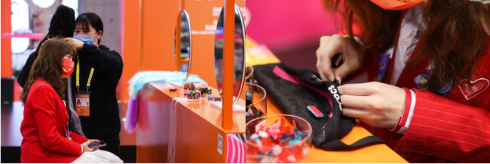奚筱磊表示,“如今在中国的消费市场中,以Z世代为代表的年轻消费者群体正在强势崛起。他们追求个性和创新、注重消费体验、敢于自我表达。”因此卡骆驰将灵魂元素之一的智必星带进了进博会,展位参观者可以获得专门为进博设计的进宝智必星套组;用CMYK相机设备拍摄个性照片;同时可以体验专业发型师现场用智必星发挥编发创意,热爱手工的观众亦可以现场定制个人专属环保手提袋,或是选择心仪的智必星装饰洞洞鞋。智必星突破时尚界限,发挥出更大的时尚影响力。