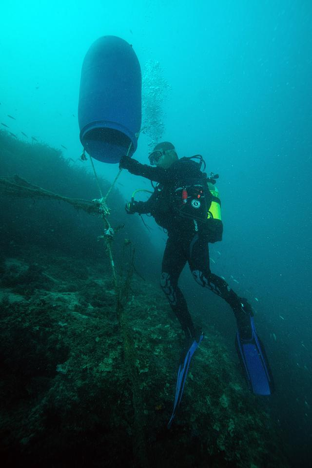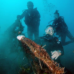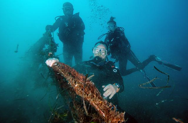 当地时间2021年11月6日,土耳其伊兹密尔,潜水员在当地海域清理废弃的“幽灵渔具”,保障船舶航行安全,保护海洋动物和海洋生态环境。“幽灵渔具”是指废弃、丢失、丢弃的渔网、钓鱼线等各类捕鱼装置。据世界动物保护协会统计,被遗弃在海洋中的“幽灵渔具”每年至少造成数十万只鲸、海豚、海豹、海龟等海洋动物的死亡,因之受伤害的海洋生物更难以计数。同时,沉入海床的“幽灵渔具”会改变海底微生物生存环境,对海洋底栖生物造成负面影响。“幽灵渔具”携带的细小沉积物会阻塞珊瑚礁缝隙,造成局部缺氧,导致海洋生物死亡。