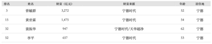 宁德上榜富豪名单(4位)↓