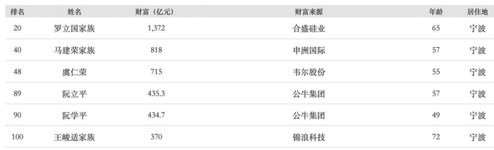 宁波上榜富豪名单(6位)↓