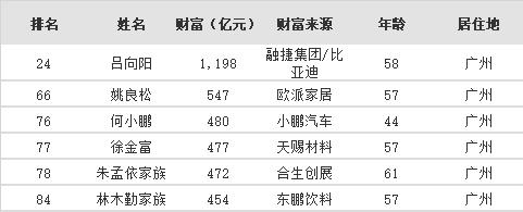 再来看广州上榜富豪名单(6位)↓