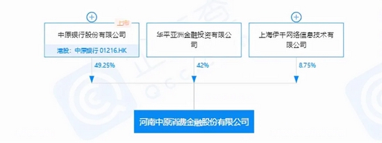 资料显示,中原消费金融成立于2016年12月30日,由中原银行作为主要出资方,与上海伊千网络信息技术有限公司共同出资发起设立,原始注册资本金5亿元,是河南省首家也是目前唯一一家持牌消费金融公司。