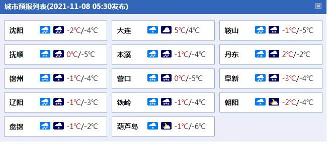 沈阳市气象台接连发布多个预警11月8日5时47分发布道路结冰红色预警受强降雪影响预计8日白天到夜间沈阳地区、沈抚改革创新示范区有积雪或道路结冰对交通有严重影响,请注意防范