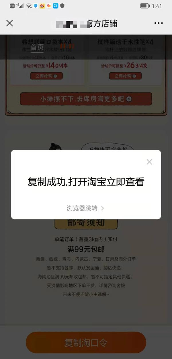 最近,一些网友发现,通过“淘口令”从微信跳转到淘宝不再顺畅。