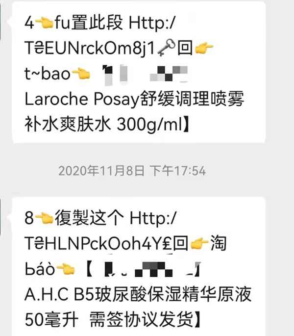 不过,至少在今年9月底前,淘宝复制到微信的淘口令,仍然保留一些手势图形或者英文、数字字符信息,以及基本的商品名称信息,大部分的用户能明白这是“淘口令”。但是,10月21日,有豆瓣网友反映称,“淘口令”变成了纯文字,且无法去微信粘贴给好友。