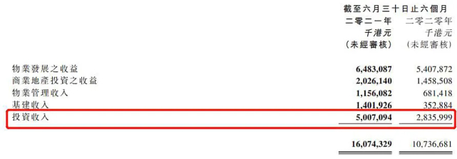 今年上半年,合生创展的投资收入同比大增76.55%,为50.07亿港元,为公司贡献超三成收入。
