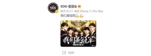 11月7日凌晨,《英雄联盟》S11全球总决赛收官,EDG战队以黑马之姿夺冠,为LPL中国赛区赢得第三个世界赛冠军。