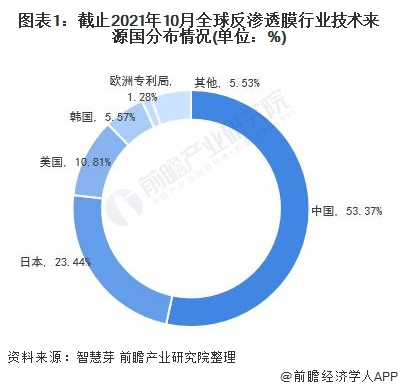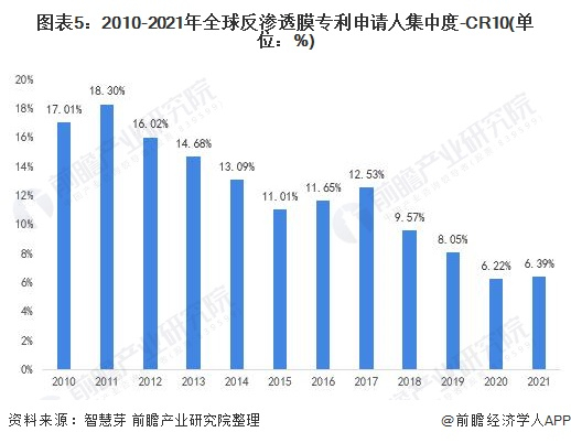 原标题:收藏!2021年全球反渗透膜行业技术竞争格局(附区域申请分布、申请人排名、专利申请集中度等) 来源:前瞻产业研究院