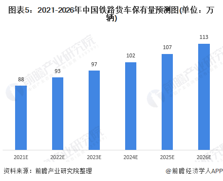 从需求规模来看,结合近几年的铁路货车保有量及增长变化情况,经过初步估算,未来中国铁路货车保有量平均增速将在3%左右,预计到2026年的铁路货车保有量在113万辆左右。