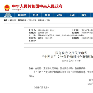 原标题:国办印发《“十四五”文物保护和科技创新规划》