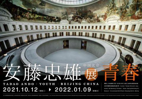 安藤忠雄全球巡回展中国北京站·青春展览于10月11日开幕,于2021年10月12日至2022年1月9日在北京民生美术馆举办。展览原比例复刻安藤忠雄的三大经典作品——光之教堂,水之教堂,以及联合国教科文组织冥想空间。