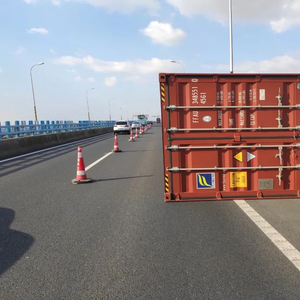 11月8日上午6时18分,舟山高速交警支队指挥中心接到司机报警:甬舟高速宁波方向35k处有一个大型集装箱掉落,占据所有车道,导致后方车辆断流,具有极大的安全隐患。