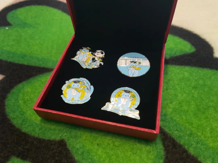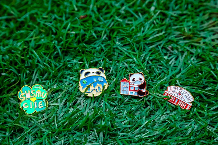 徽章充分体现商学院特色,是促进上商“小叶子”与上海其他高校“小叶子”们友谊的关键法宝。四枚徽章的主题形象而鲜明,图案依旧秉承上商的传统,融入了活泼可爱的商宝元素。金色的勾边与淡雅的“商宝蓝”,“精致感UPUP”!