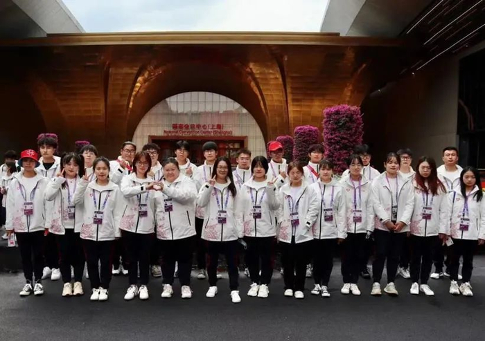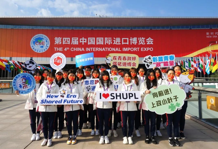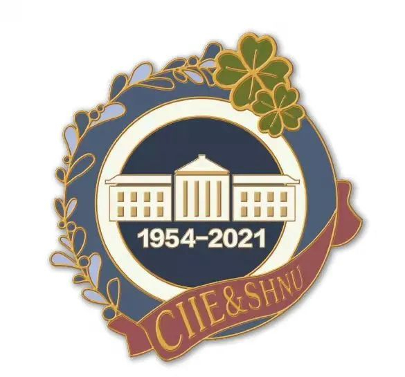 学校为第四届进博会“小叶子”们定制的专属徽章,综合了代表国家会展中心(上海)的四叶草和学校标志建筑一教,增强上海师大“小叶子”的使命感。