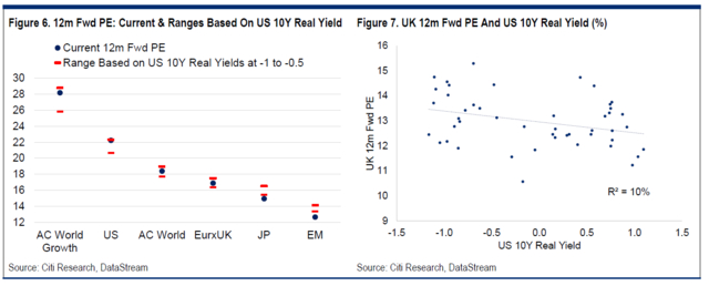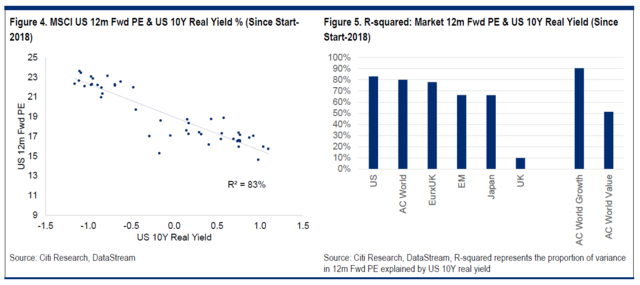 但花旗同时承认,尽管实际收益率的短期上升可能会让股市剧烈波动,但如果美联储阻止实际收益率的上涨幅度,股市下跌空间实际相对有限:通过间接“控制”实际收益率,美联储实际上“控制”了股市估值的水平。