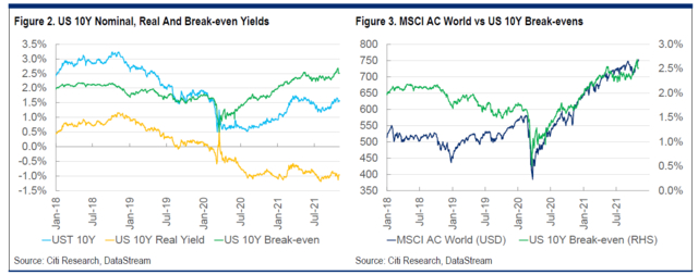伴随加息预期升温(应对通胀),花旗预测认为未来12个月美国10年期实际利率或将上升至- 0.5%。考虑到股市对实际收益率的波动已变得更加敏感,这意味着成长股或将面临重大回调。