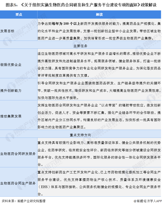 在2018年5月31日,国家发展改革委办公厅、工业和信息化部办公厅、国家卫生健康委员会办公厅、国家药品监督管理局办公室联合发布了《关于组织实施生物医药合同研发和生产服务平台建设专项的通知》指出将着力推进供给侧结构性改革,积极推动药品上市许可持有人制度全面实施,重点支持一批高水平、国际化的综合性生物医药合同研发和生产服务平台建设,着力提升生物医药研发和生产服务能力,促进生物产业倍增发展,培育生物经济新业态新模式。
