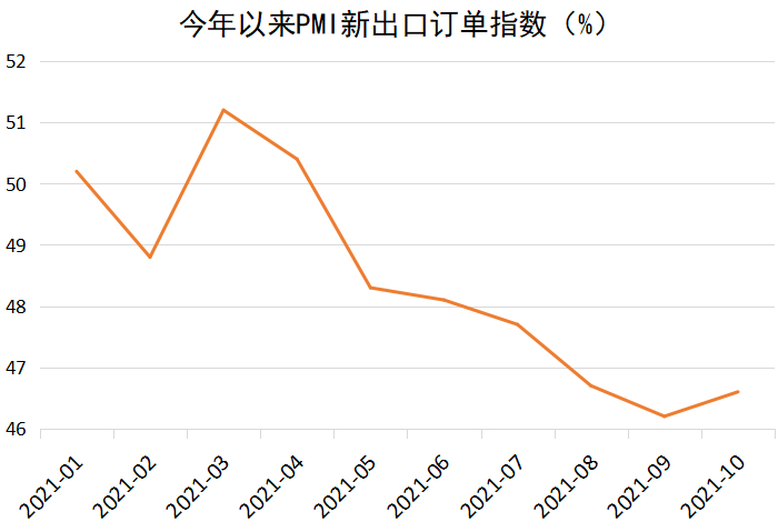 唐建伟接受《每日经济新闻》记者采访时表示,出口总额大并不一定代表订单非常多,原材料价格上涨和运费价格上涨均可能反映到终端出口总值上。“PMI新出口订单指数下滑,表明企业接单数量有所下降。因此,四季度较三季度出口增速大概率会放缓。”
